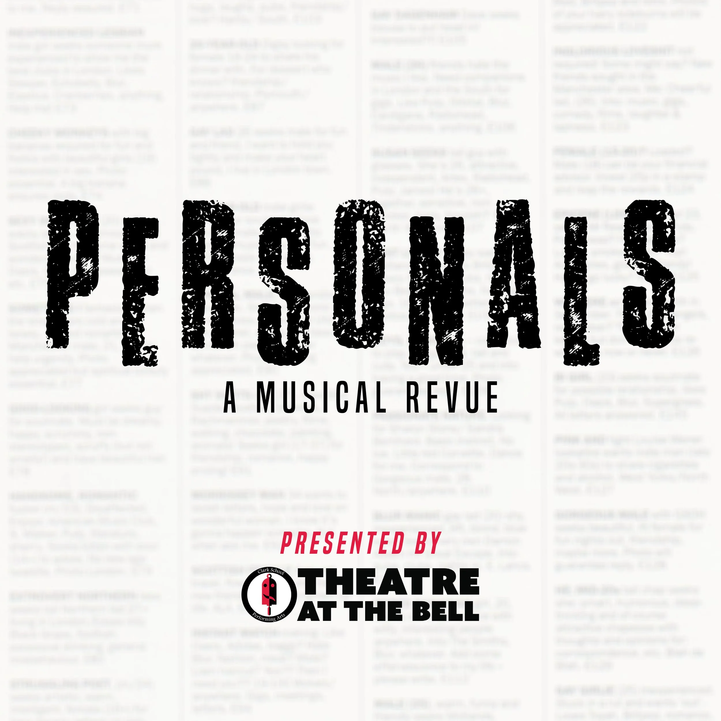 “Before they created the most successful sitcom in the history of television, the head writers of Friends teamed up with some of New York's most talented composers and lyricists to create this off-Broadway hit. Engaging, funny, romantic, heartbreaking and occasionally wacky, Personals is a collection of songs and scenes about people who place personal ads... lonely people looking for that certain someone. In other words, Personals is about most of us, searching for love in the modern world.” - Concord Theatricals